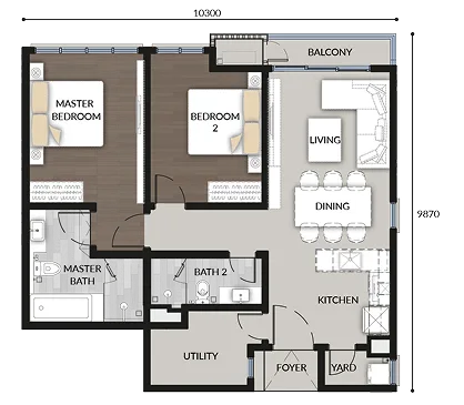 2 Bedrooms + Utility, 2 Bathrooms